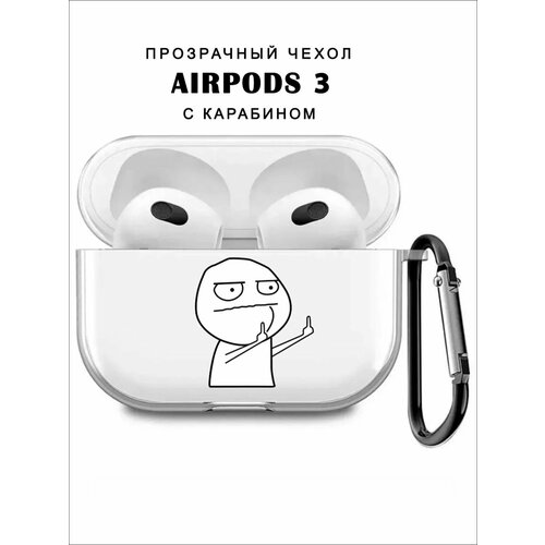 Чехол для наушников AirPods 3 ( на Аирподс 3 ) силиконовый с принтом и карабином, прозрачный