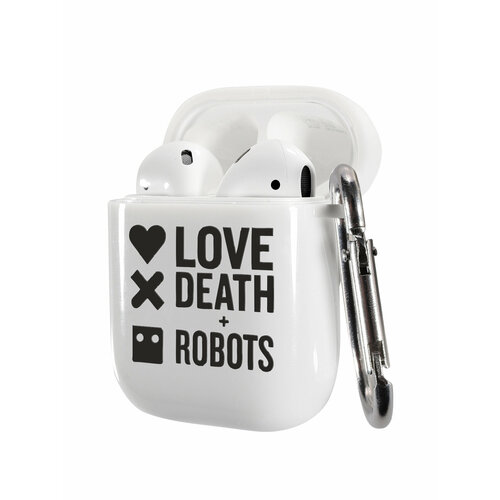 Силиконовый чехол Mcover для беспроводных наушников AirPods 1/2, с карабином, глянцевый, Любовь Смерть Роботы V.1