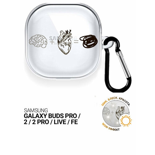 Чехол на Samsung Galaxy Buds Pro / 2 / 2 Pro / Live / FE с принтом "Мозг плюс сердце" прозрачный
