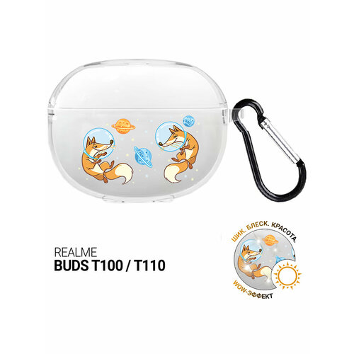 Чехол на Realme Buds T100 / T110 с принтом "CosmoFoxes" прозрачный
