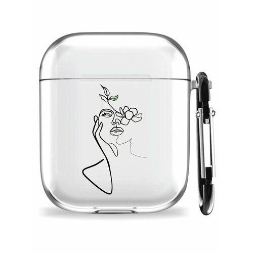 Силиконовый чехол Mcover для беспроводных наушников AirPods 1/2, с карабином, глянцевый, Девушка и цветы V.1