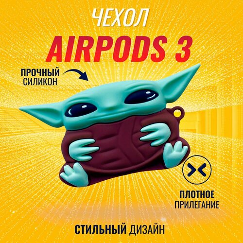 Чехол для AirPods 3 "Малыш Йода", силиконовый, противоударный, темно-зеленый/коричневый