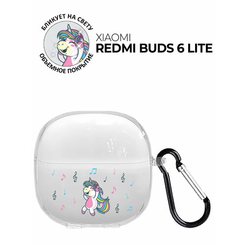 Чехол на Xiaomi Redmi Buds 6 Lite с принтом "Musical Unicorn" прозрачный