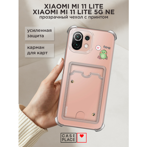 Чехол на Xiaomi Mi 11 Lite/5G NE (Сяоми Ми 11 Лайт/5G NE) с картой и принтом Динозавр и пчёлки