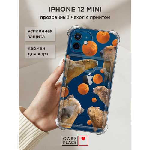 Чехол на Apple iPhone 12 mini (Айфон 12 Мини) с картой и принтом Капибара
