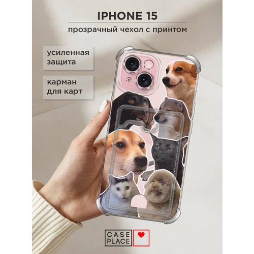Чехол на Apple iPhone 15 (Айфон 15) с картой и принтом Мемы