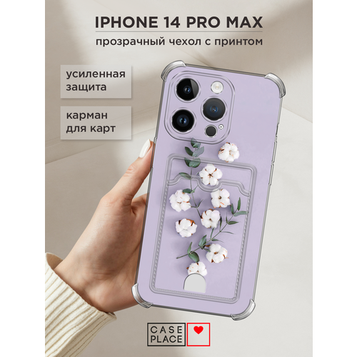 Чехол на Apple iPhone 14 Pro Max (Айфон 14 Про Макс) с картой и принтом Веточка хлопка