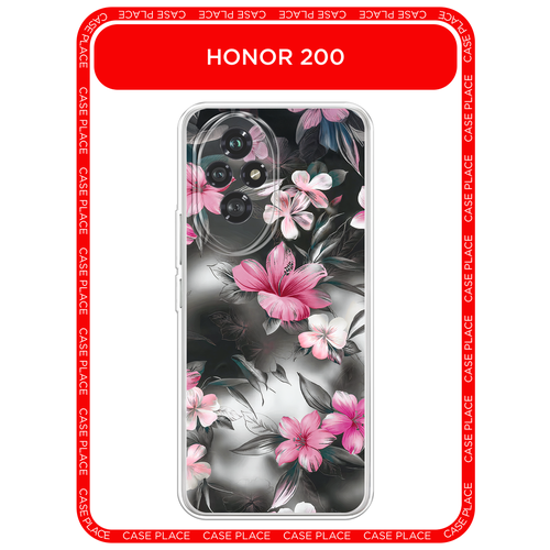 Силиконовый чехол на Honor 200 / Хонор 200 с принтом Цветы на сером