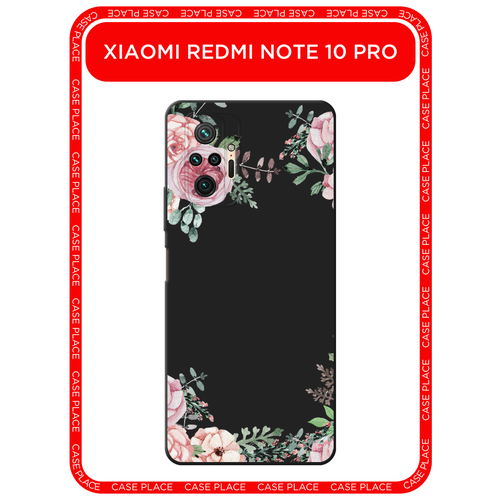 Черный матовый чехол на Xiaomi Redmi Note 10 Pro / Сяоми Редми Нот 10 Pro с принтом Нежные розы акварель