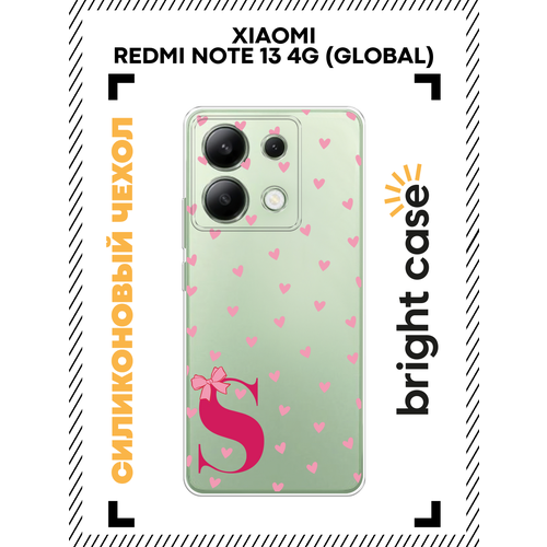 Чехол на Xiaomi Redmi Note 13 4G (Global) / Сяоми Редми Нот 13 4G с принтом Буква S сердечки, прозрачный