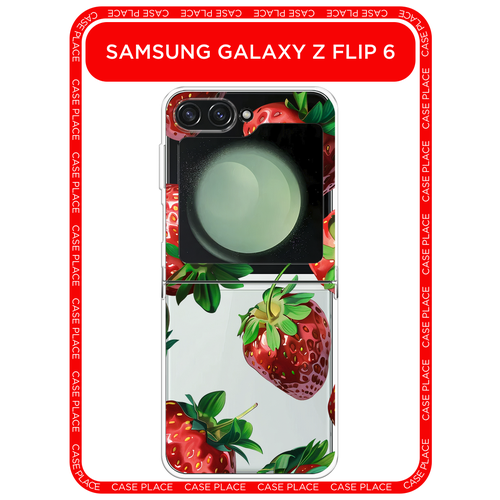 Чехол на Samsung Galaxy Z Flip 6/7 FE / Самсунг Z Flip 6/7 Фе с принтом Сочная клубника 3, прозрачный