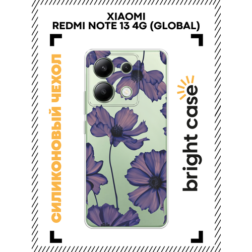 Чехол на Xiaomi Redmi Note 13 4G (Global) / Сяоми Редми Нот 13 4G с принтом Фиолетовые космеи, прозрачный