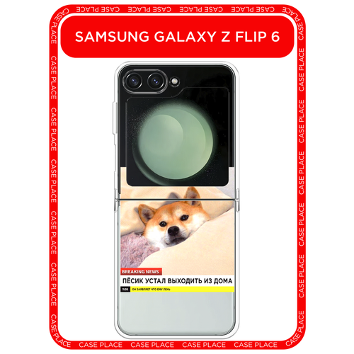 Чехол на Samsung Galaxy Z Flip 6/7 FE / Самсунг Z Flip 6/7 Фе с принтом Уставший песик, прозрачный