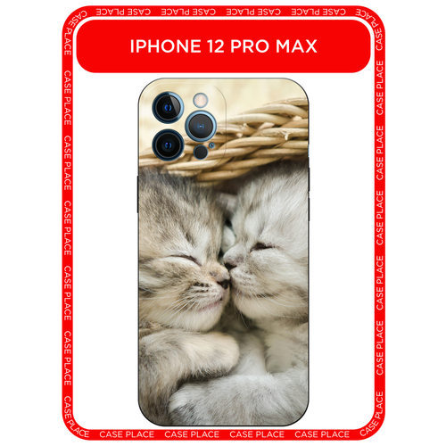 Черный матовый чехол на Apple iPhone 12 Pro Max / Айфон 12 Про Макс с принтом Милые котята