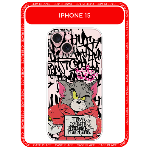 Чехол на Apple iPhone 15 / Айфон 15 с принтом Том и граффити, прозрачный