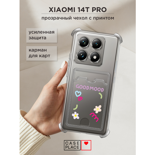 Чехол на Xiaomi 14T Pro (Сяоми 14T Про) с картой и принтом Милые цветы и надпись GoodMood