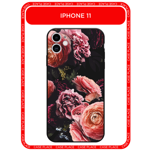 Черный матовый чехол на Apple iPhone 11 / Айфон 11 с принтом Бордовые винтажные цветы