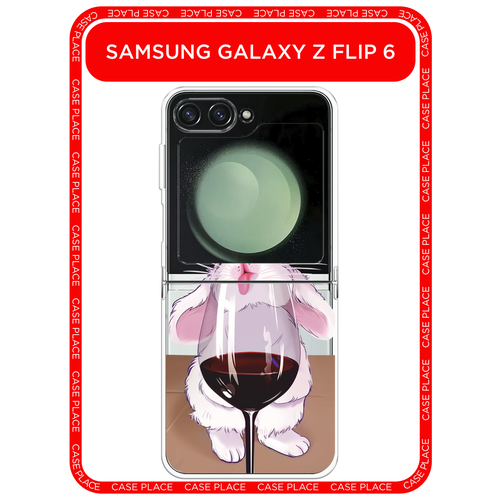Чехол на Samsung Galaxy Z Flip 6/7 FE / Самсунг Z Flip 6/7 Фе с принтом Кролик облизывает бокал, прозрачный
