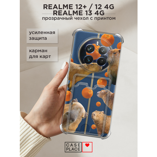 Чехол на Realme 12+/12 4G/13 4G (Реалми 12 Плюс/12 4G/13 4G) с картой и принтом Капибара