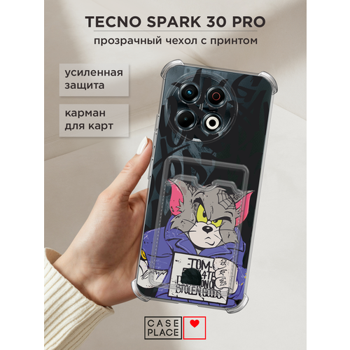 Чехол на Tecno Spark 30 Pro (Текно Спарк 30 Про) с картой и принтом Том и Джерри
