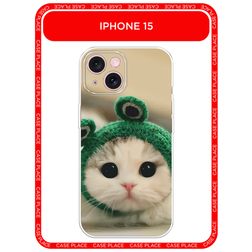 Чехол на Apple iPhone 15 / Айфон 15 с принтом Котёнок в лягушачьей шапочке