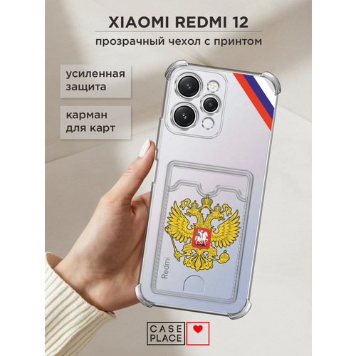 Чехол на Xiaomi Redmi 12 (Сяоми Редми 12) с картой и принтом "С гербом России"