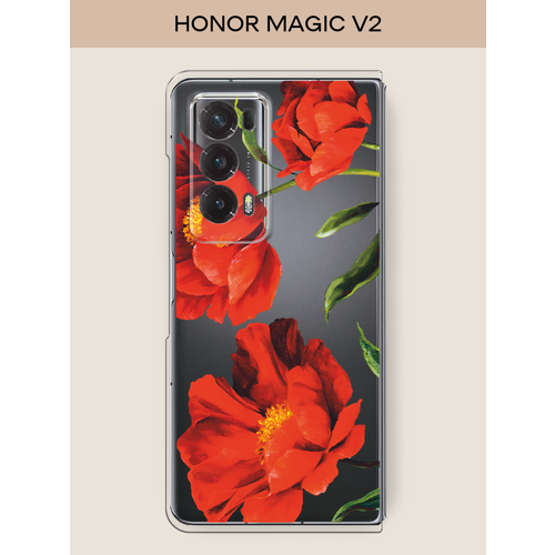 Чехол на Honor Magic V2 / Хонор Меджик V2 с принтом Красные маки, прозрачный