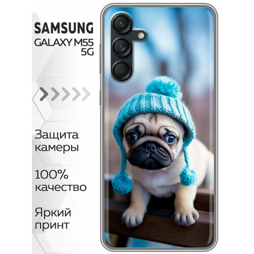 Чехол для Samsung Galaxy M55 с принтом Щенок мопса в шарке (Самсунг Галакси М55)