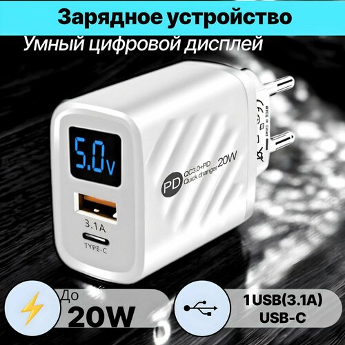 Зарядное устройство для телефонов и планшетов с двумя портами USB и Type-C
