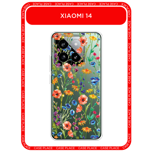 Чехол на Xiaomi 14 / Сяоми 14 с принтом Маки и васильки фон, прозрачный