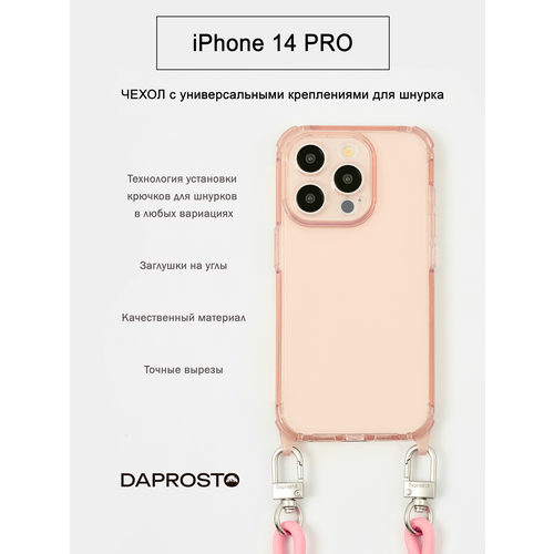 Чехол DAPROSTO для iPhone 14 Pro, прозрачно-розовый Transparent customizable чехол с креплением для шнурка (без шнурка)
