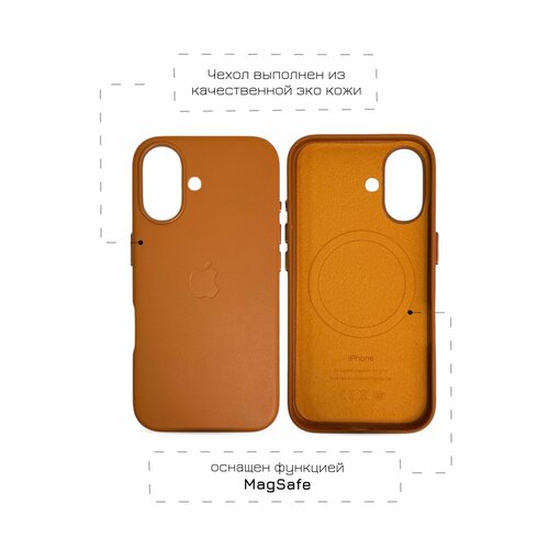 Чехол для iPhone 16, MagSafe, Soft touch, кожаный