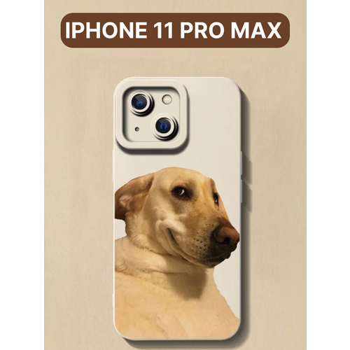 Защитный чехол на айфон 11 про макс / iphone 11 Pro Max силиконовый противоударный с защитой камеры, собачка, бежевый