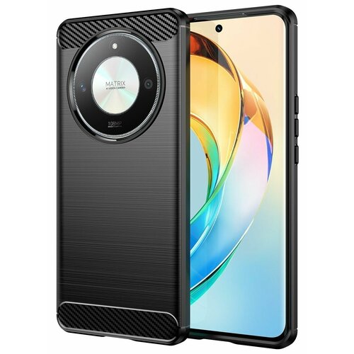 Чехол на Honor X9b силиконовый карбон сталь чёрный