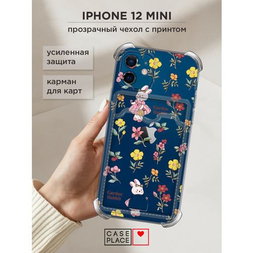 Чехол на Apple iPhone 12 mini (Айфон 12 Мини) с картой и принтом Садовый кролик
