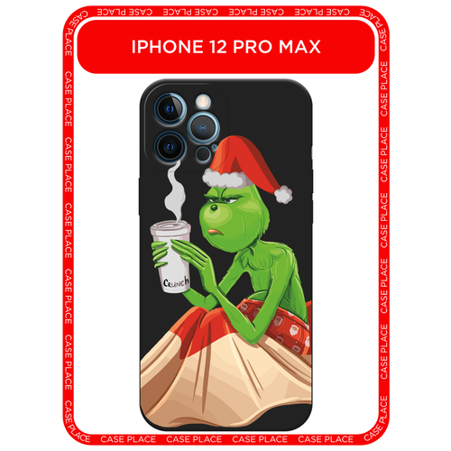 Черный матовый чехол на Apple iPhone 12 Pro Max / Айфон 12 Про Макс с принтом Похититель Рождества отдыхает