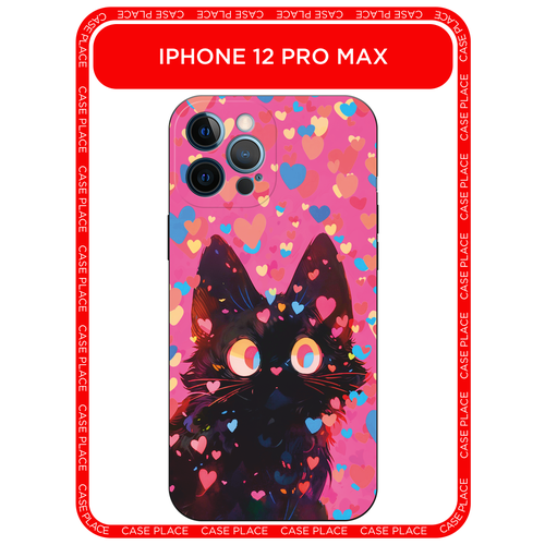 Черный матовый чехол на Apple iPhone 12 Pro Max / Айфон 12 Про Макс с принтом Кошачья романтика