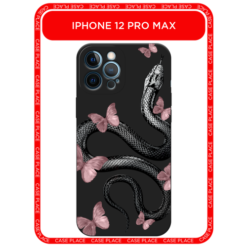 Черный матовый чехол на Apple iPhone 12 Pro Max / Айфон 12 Про Макс с принтом Змейка с бабочками