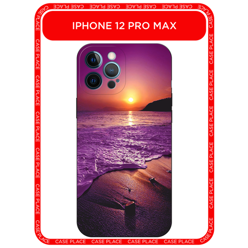 Черный матовый чехол на Apple iPhone 12 Pro Max / Айфон 12 Про Макс с принтом Закат на пляже