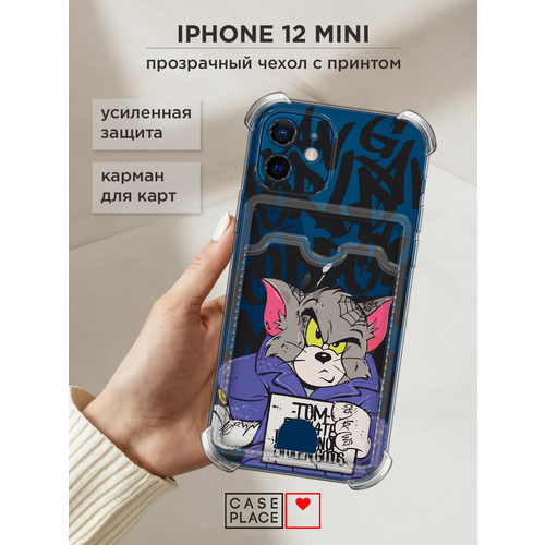 Чехол на Apple iPhone 12 mini (Айфон 12 Мини) с картой и принтом Том и Джерри