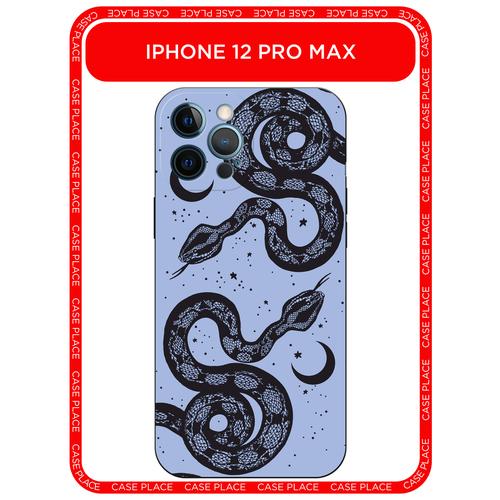 Черный матовый чехол на Apple iPhone 12 Pro Max / Айфон 12 Про Макс с принтом Лунные змеи