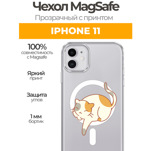 Чехол на Айфон 11 (Apple iPhone 11) MagSafe с магнитом и принтом "Трёхцветный котик"