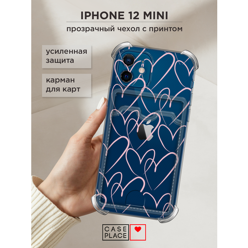 Чехол на Apple iPhone 12 mini (Айфон 12 Мини) с картой и принтом Рисованные сердечки