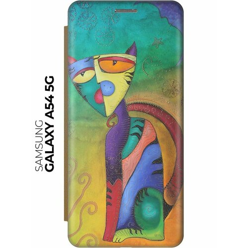 Чехол-книжка Разноцветный котик на Samsung Galaxy A54 5G / Самсунг А54 золотой
