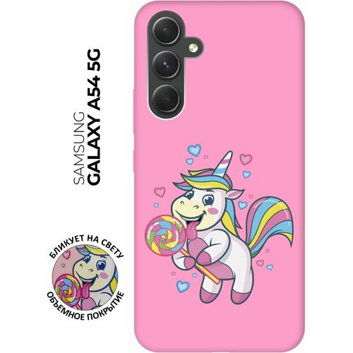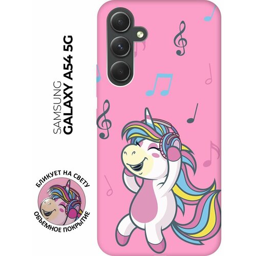 Матовый чехол Musical Unicorn для Samsung Galaxy A54 5G / Самсунг А54 с 3D эффектом розовый