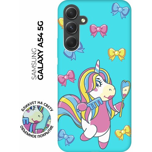 Матовый чехол Lady Unicorn для Samsung Galaxy A54 5G / Самсунг А54 с 3D эффектом мятный