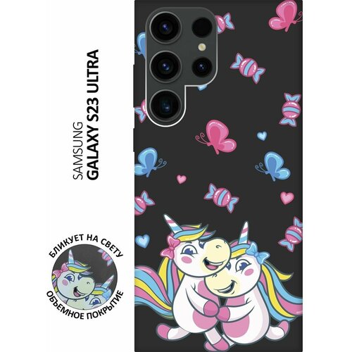 Матовый чехол Unicorns and Candies для Samsung Galaxy S23 Ultra / Самсунг С23 Ультра с 3D эффектом черный