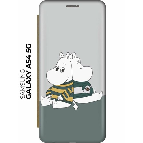 Чехол-книжка Муми-тролли на Samsung Galaxy A54 5G / Самсунг А54 золотой