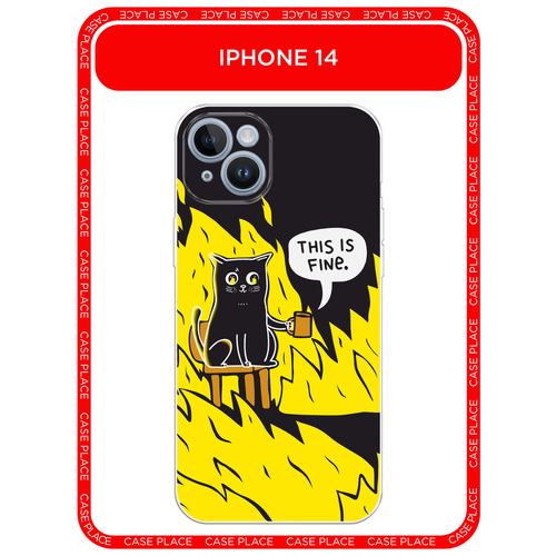Чехол на Apple iPhone 14 / Айфон 14 с принтом This is fine cat