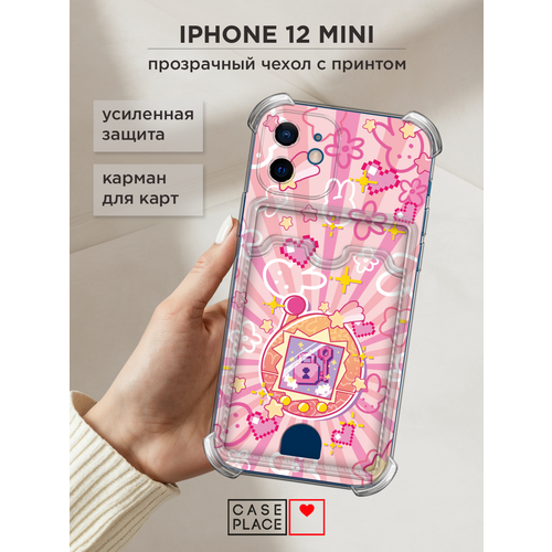 Чехол на Apple iPhone 12 mini (Айфон 12 Мини) с картой и принтом Тамагочи